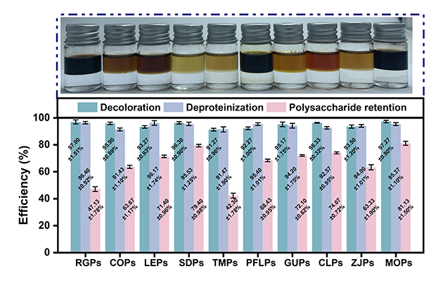 圖2.ATPS@DES對(duì)10種植物來源多糖(PDPs)的純化通用性研究