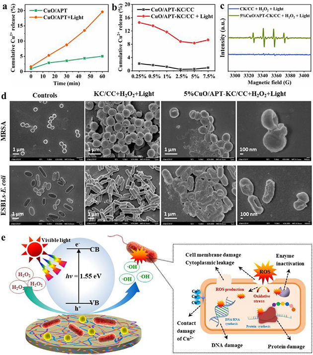 圖5.CuO/APT-KC/CC凝膠膜的抗耐藥菌活性和作用機理